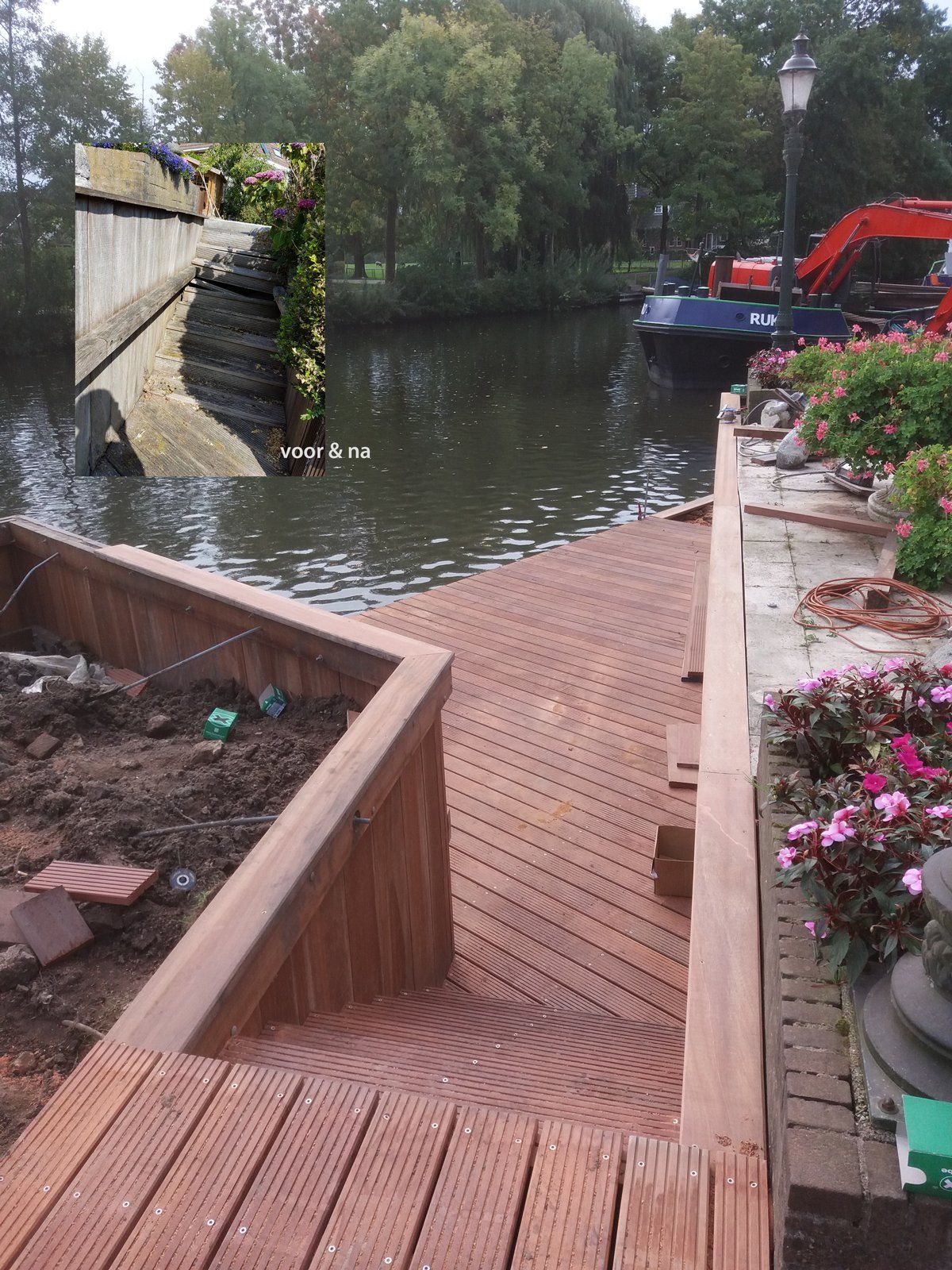 Voor- en nafoto aanleg kanosteiger